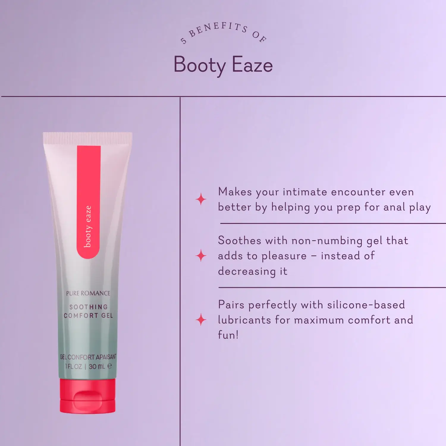 B00ty Eaze – Prepping for play makes every intimate encounter better, so soothe your mind (and your behind) with B00ty Eaze. Apply it to the anal opening and let the soothing formula help you get relaxed and ready for a little fun. This comfort gel pairs perfectly with your favorite silicone-based lubricants so you can easily add this new player into your anal game!