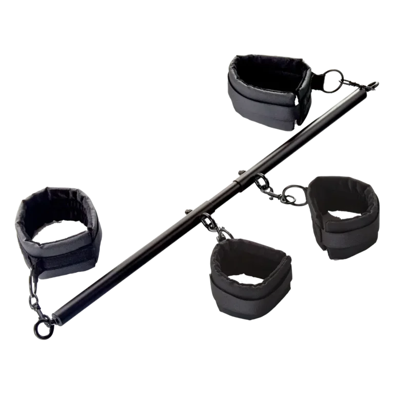 Say “yes” to the pose of your dreams. Bare It All is an adjustable, three-piece spreader bar with detachable, velvety-lined cuffs for wrists and ankles. Expand, explore, and customize your restraint scene—then break it down for discreet storage.