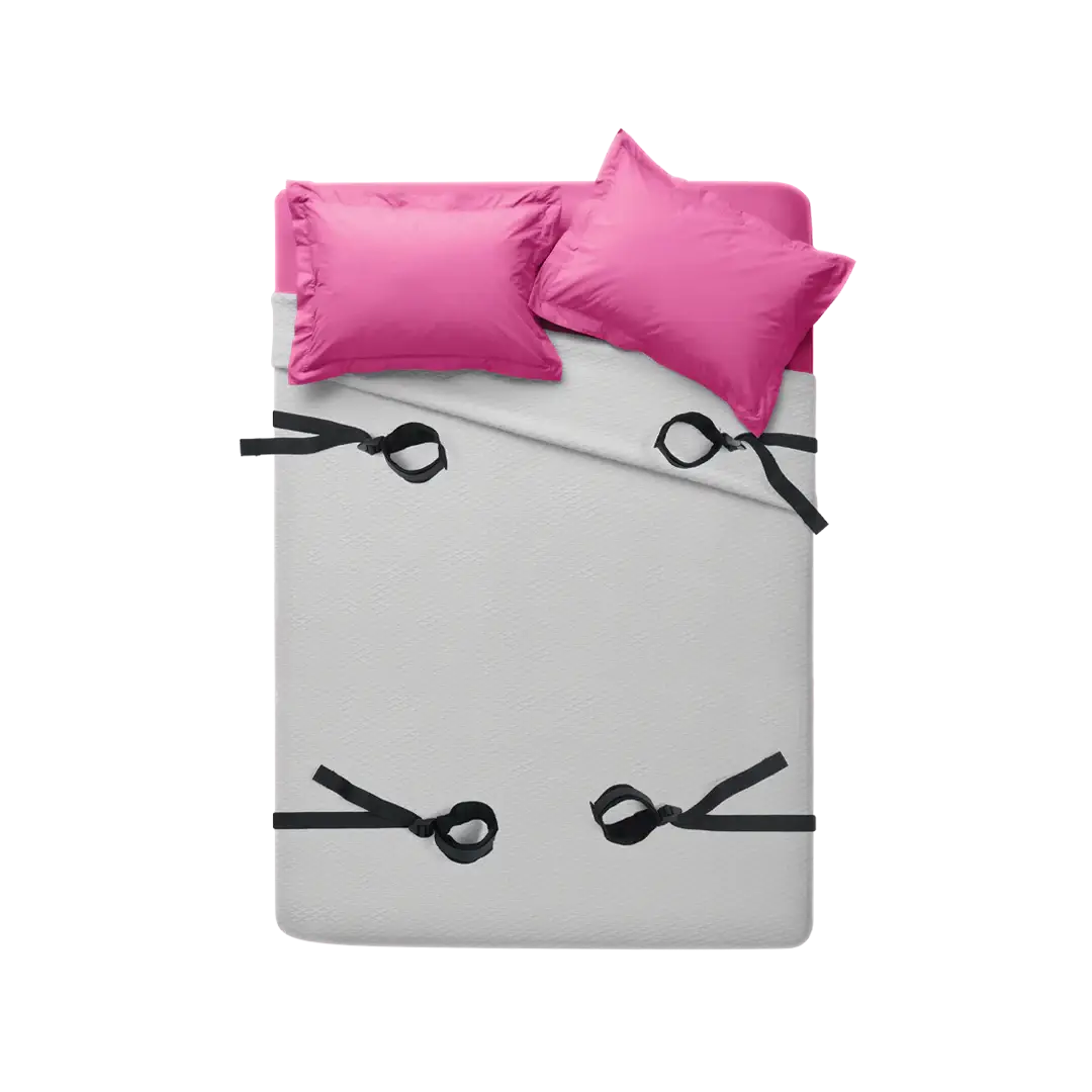 Transform your bedroom to a bondage playground in minutes with this sultry restraint system that delivers endless possibilities for pleasure. Slide the adjustable straps under any size mattress and position the soft cuffs anywhere you desire—try the head and foot of the bed for a sexy, stretched-out position or the sides of the bed for a tempting, spread out pose.