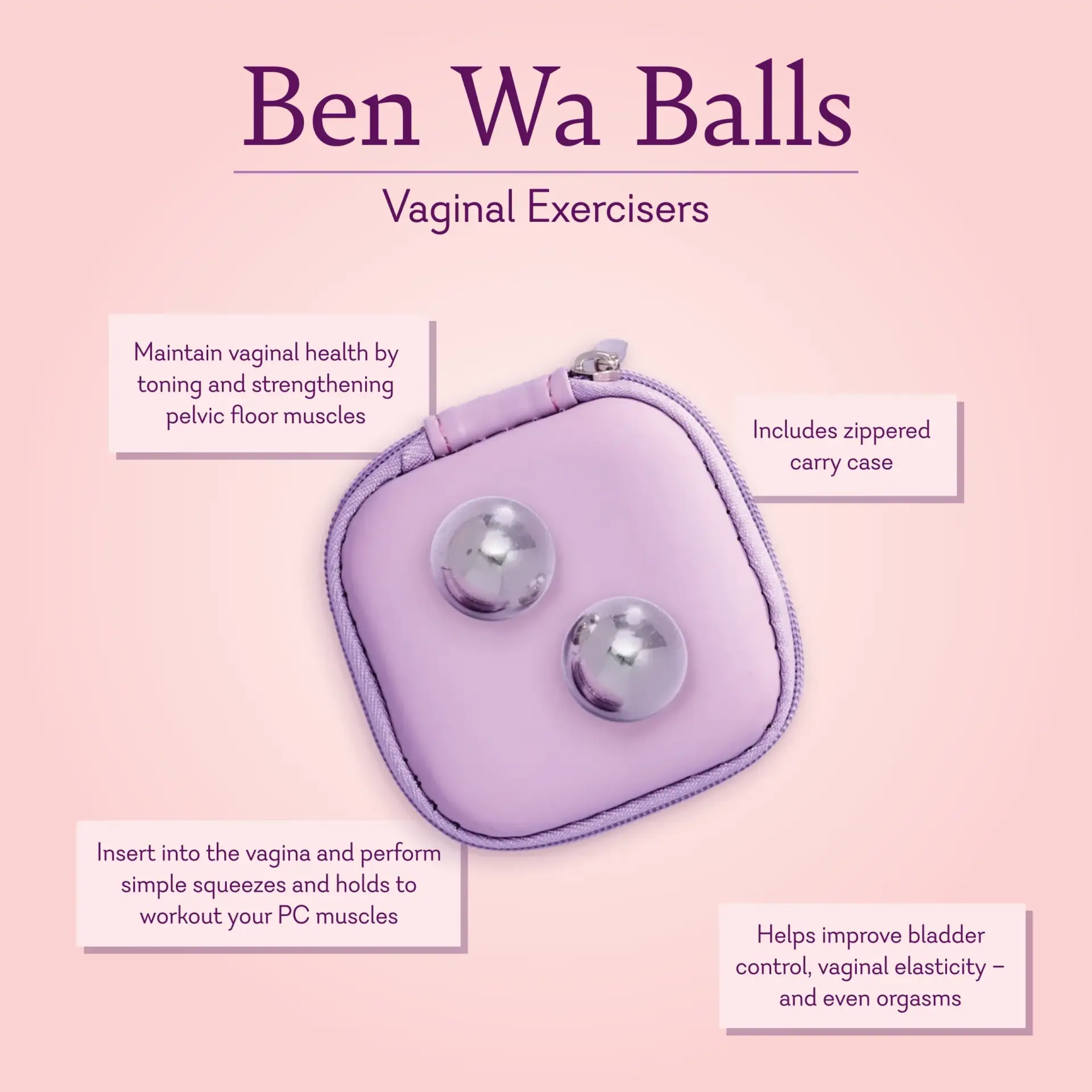 For centuries, Ben Wa Balls have helped women ensure they’re exercising their vaginal walls and bladder muscles in a way that will positively impact sexual arousal and restore and maintain vaginal elasticity. Use these silver-plated, weighted balls for exercising pelvic floor muscles.