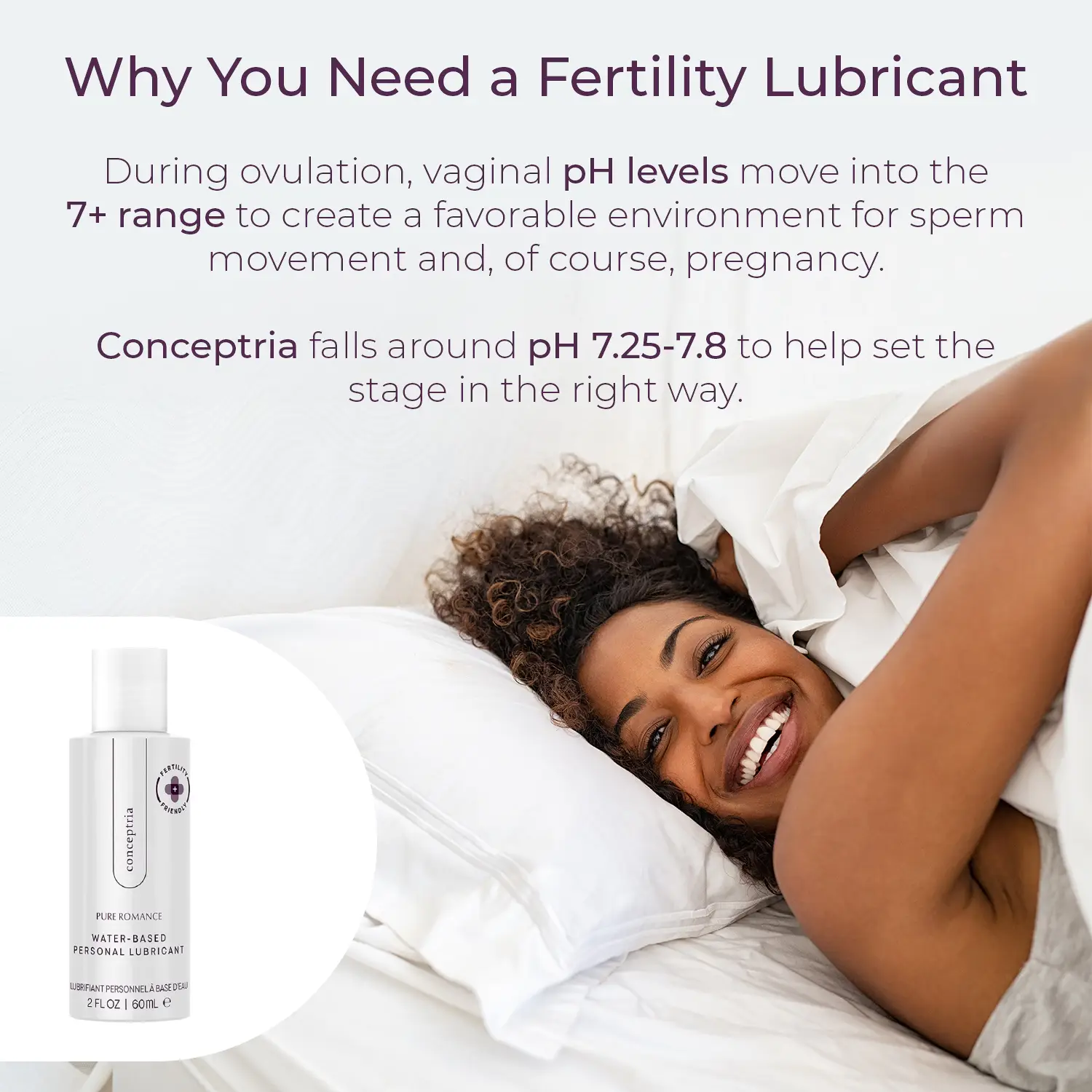 Conceptria is a fertility-friendly, water-based lubricant that helps optimize sperm mobility while keeping intimacy fun. pH-balanced and low-osmolality, it mimics the natural fertile environment, ensuring sperm can do their best work—without compromising sensation.