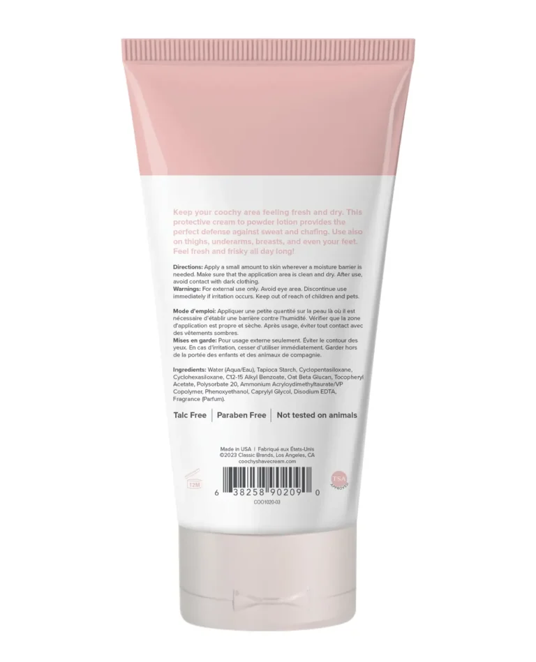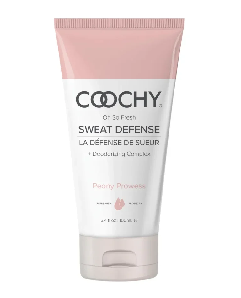 Freshness that works as hard as you do. Coochy Sweat Defense is a cream-to-powder lotion that keeps your intimate areas dry, comfortable, and chafe-free all day. Use it on thighs, underarms, breasts — anywhere that needs a little extra protection. The soft Peony Prowess scent leaves you lightly sweet and totally fresh. Stay dry, stay confident, stay Coochy.