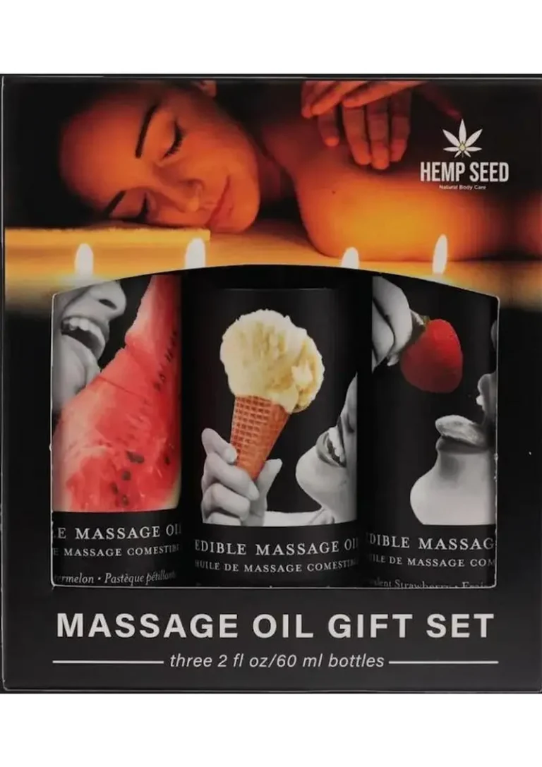 Turn foreplay into full-body indulgence with the H*mp Seed Edible Massage Oil Gift Set—a trio of kissable, lickable, oh-so-delicious massage oils that take intimacy from sweet to sweeter. This luxurious blend of natural oils (h*mp, almond, grapeseed, apricot, and vitamin E) delivers a velvety-smooth glide that feels like spa-quality massage, but with a playful twist: every stroke is completely edible.