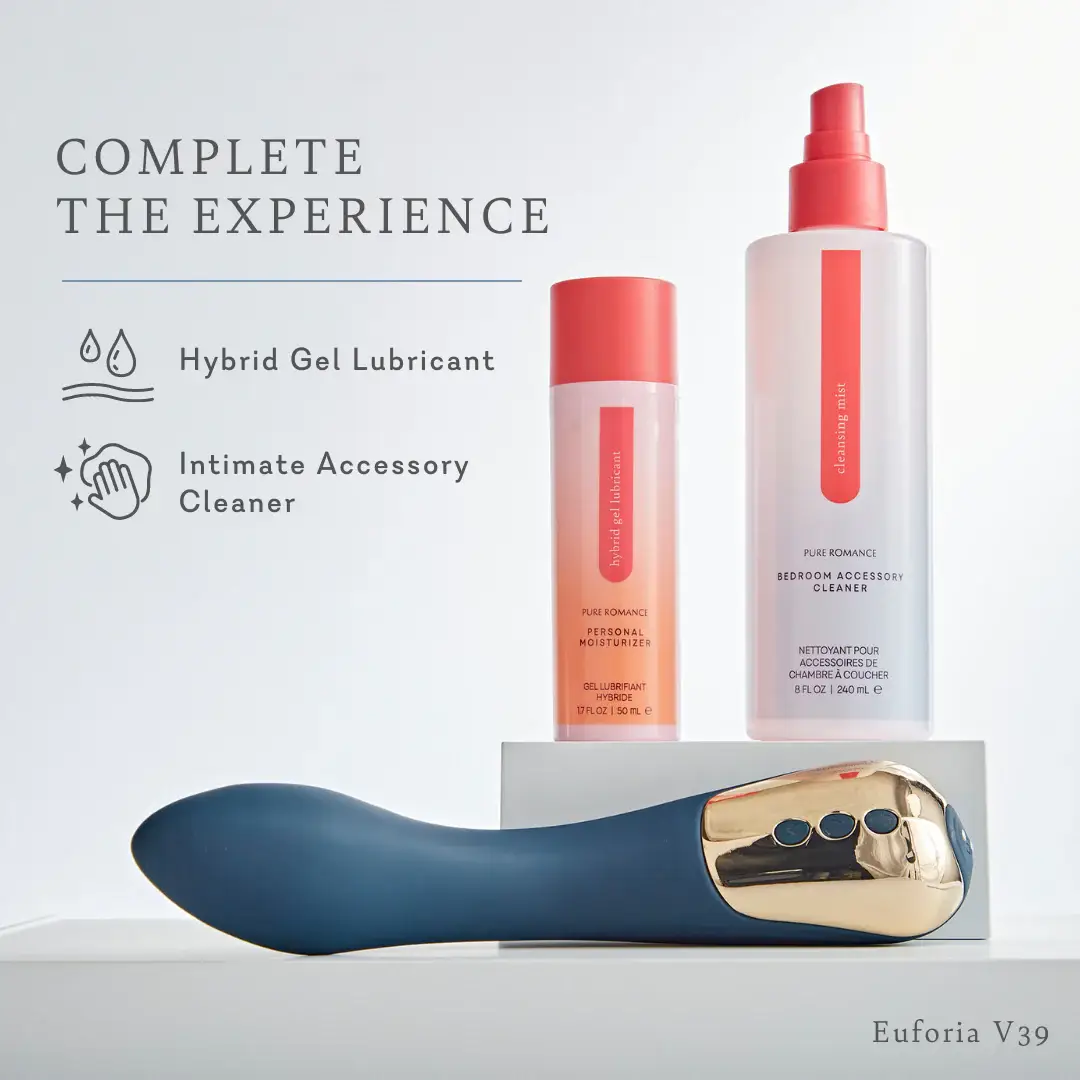 Experience luxury redefined with Euforia V39. Crafted with premium silicone, injection-molded aluminum, and 18-karat gold plating, this vibrator pairs 12 powerful vibration modes with Caleo™ heating technology for the most indulgent warmth.