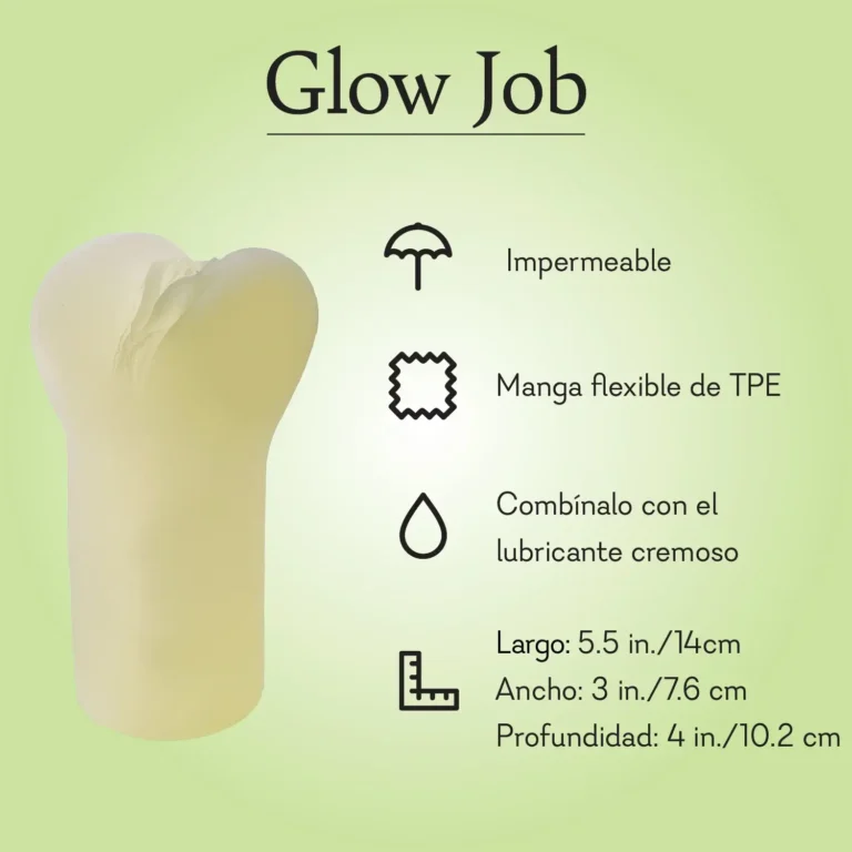 Lights out, pleasure on. Glow Job is a glow-in-the-dark stroker with a lifelike exterior and an inner chamber lined with ridges and nubs that thrill with every stroke. Close-ended for easy cleanup and bath-friendly for steamy sessions—just add creamy lube and enjoy the show.