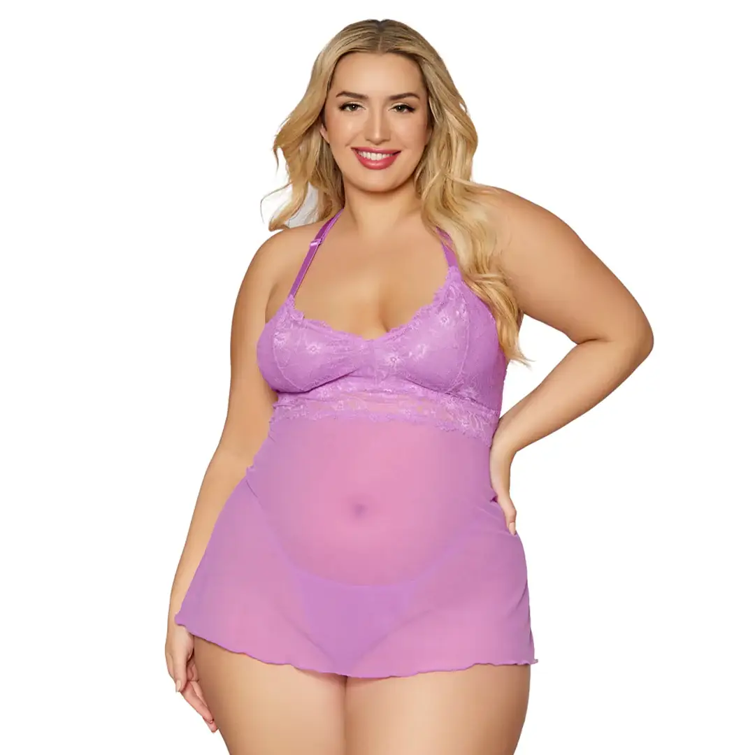 Sexy, comfortable, and flattering: this Lace & Mesh Chemise delivers the look so you can deliver the rest. The stretch lace soft cups are lined for comfort, and the halter straps can be adjusted to best fit your body. No matter if you are turning up the heat in the bedroom or cooling down with a slow, sensual day, this set has you covered.