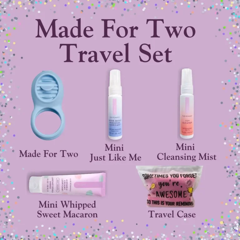 Everything you need for a weekend rendezvous! Made For Two is perfect for that alone time together. Set also includes two lubricants – Just Like Me and Whipped on Sweet Macaron – and a travel Cleansing Mist to keep everything together, clean, and ready for the next adventure.