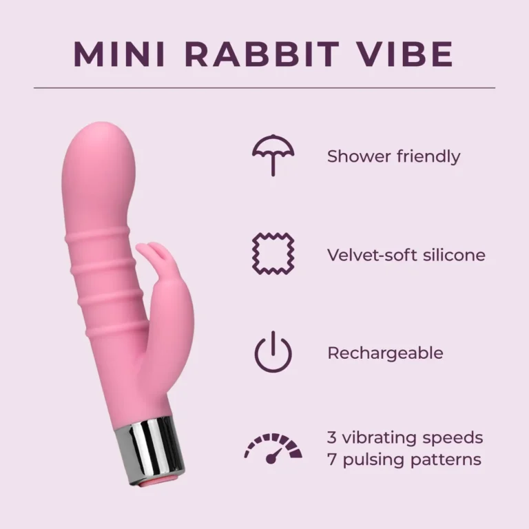 Small but mighty — the Mini Rabbit Vibe proves that great things really do come in travel size. With a silky silicone body, a curved G-spot head, and a teasing clitoral bunny, this little powerhouse delivers dual stimulation that hits all the right places. Choose from 10 vibration modes (3 speeds + 7 patterns) and let the ribbed shaft and flickering ears work their magic. Discreet, rechargeable, and shower-friendly, it’s the perfect travel companion when pleasure’s on your itinerary.