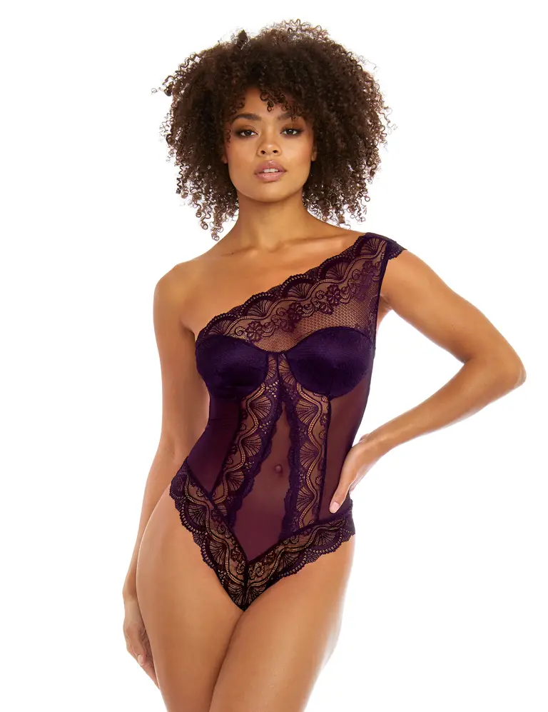 ndulge in pure elegance with this one-shoulder lace bodysuit in a stunning plum color from Dreamgirl. The intricate lace detailing on this one-piece is perfect for any occasion, whether it be a romantic evening or a night out with the girls. The size of this bodysuit is XL, perfect for a women who want to feel confident and sexy. The fabric type is lace, adding to the overall allure of the garment. The neckline is one shoulder, giving it a unique and trendy touch. The color is a beautiful purple, making it stand out from the crowd. The style is a one-piece, making it easy to wear and comfortable. The theme is colorful, perfect for anyone who loves to add a pop of color to their wardrobe.