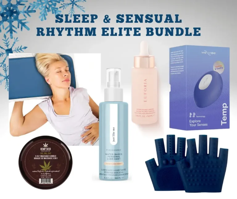 The Sleep & Sensual Rhythm Elite Bundle is a luxury-level experience designed for women who want premium comfort, deeper connection, and elevated pleasure. This indulgent collection pairs temperature play, skin-nourishing formulas, and high-quality pleasure products for a fully immersive wind-down ritual.