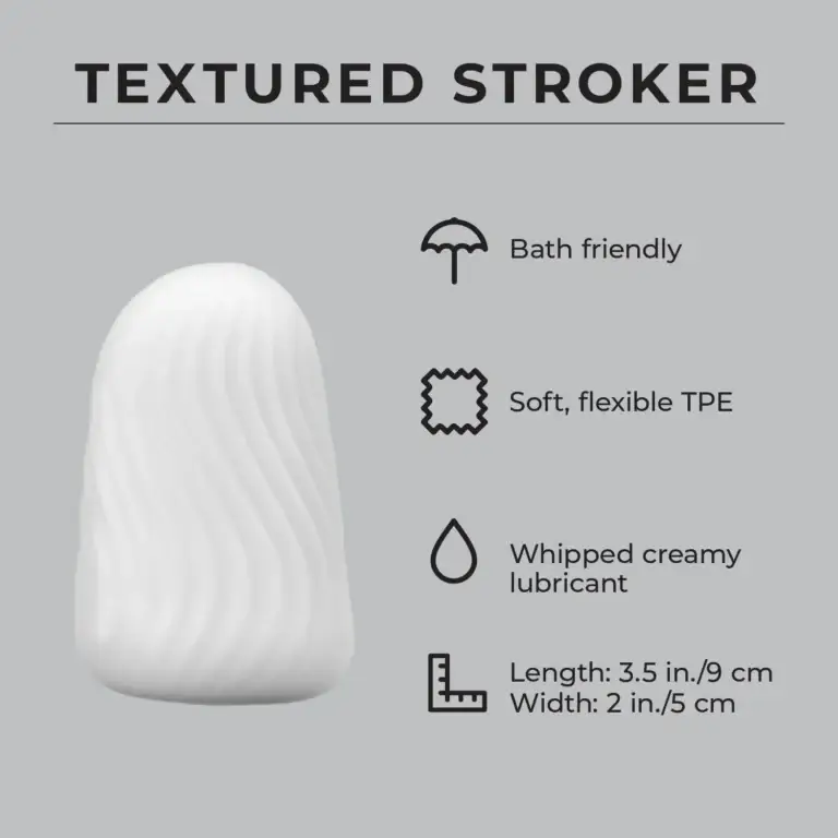 Elevate your solo sessions with the Textured Stroker—a compact, travel-friendly pleasure tool lined with ripples, ridges, and nubs that excite with every motion. Made from ultra-soft TPE, it feels incredible in your hand and even better in action. The discreet case doubles as a drying stand so you’re always ready for round two.