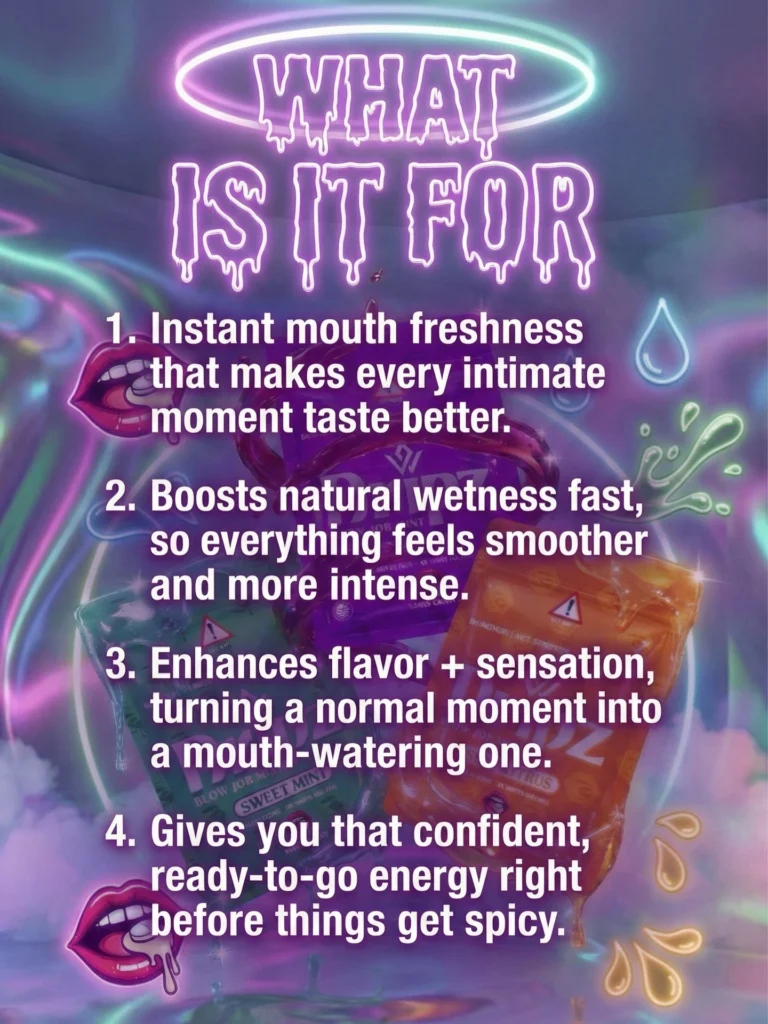 Bring a little fun and freshness into the moment with VVSEX® Candy Dripz Dry Mouth Mints — a flavorful, fast-acting way to boost confidence and enhance the experience.